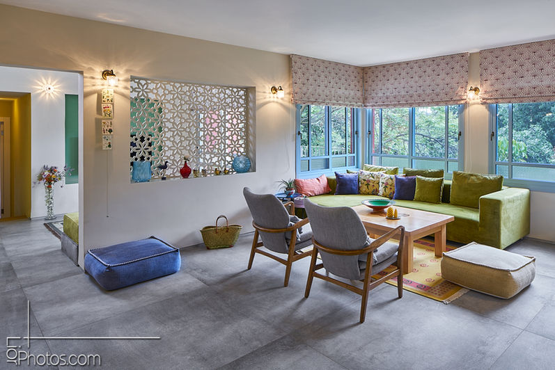 בבית נעשה שיפוץ כללי - פנים וחוץ, שתילת ממ"ד בקומת המרתף מתחת למפלס הסלון.